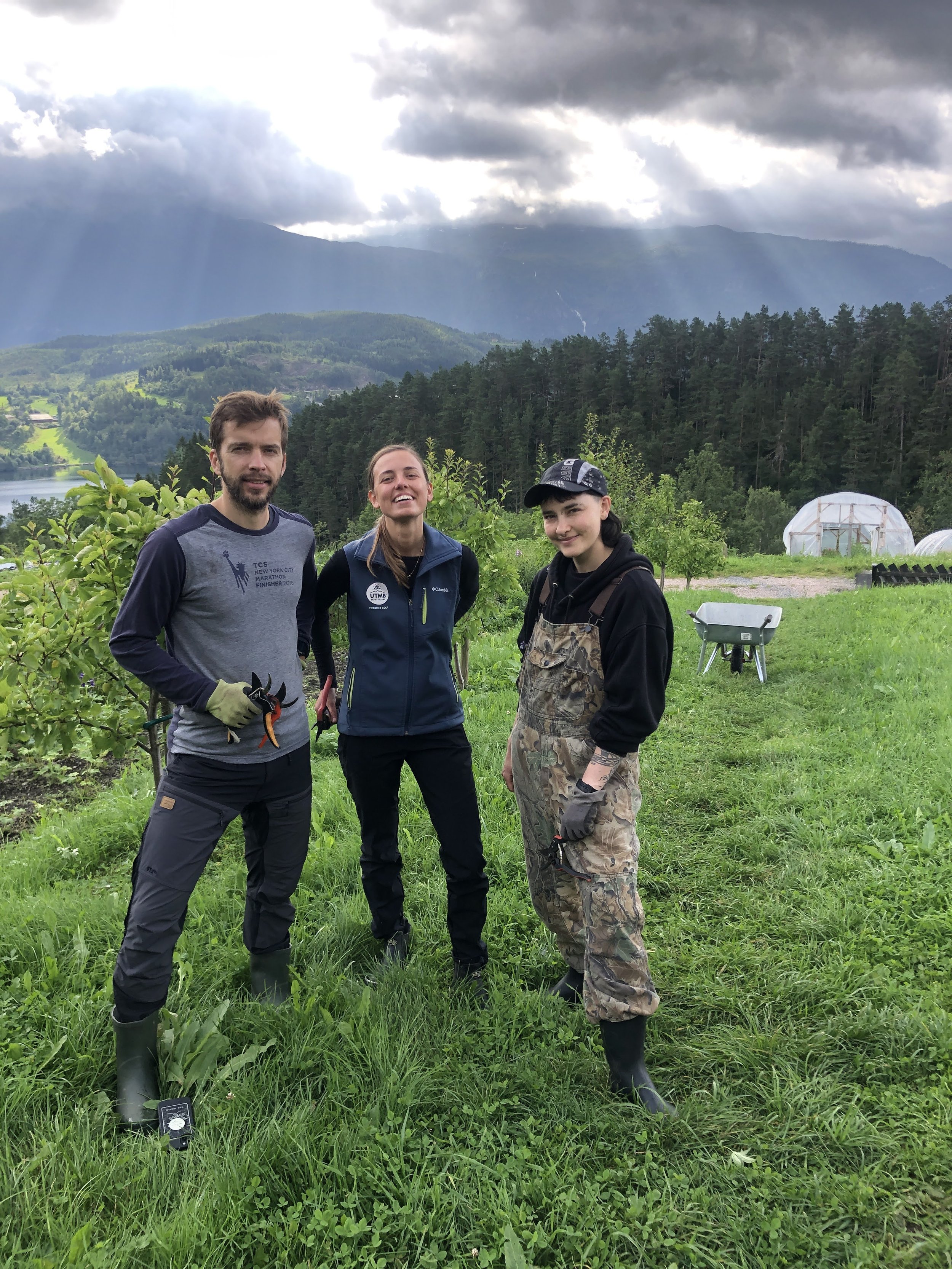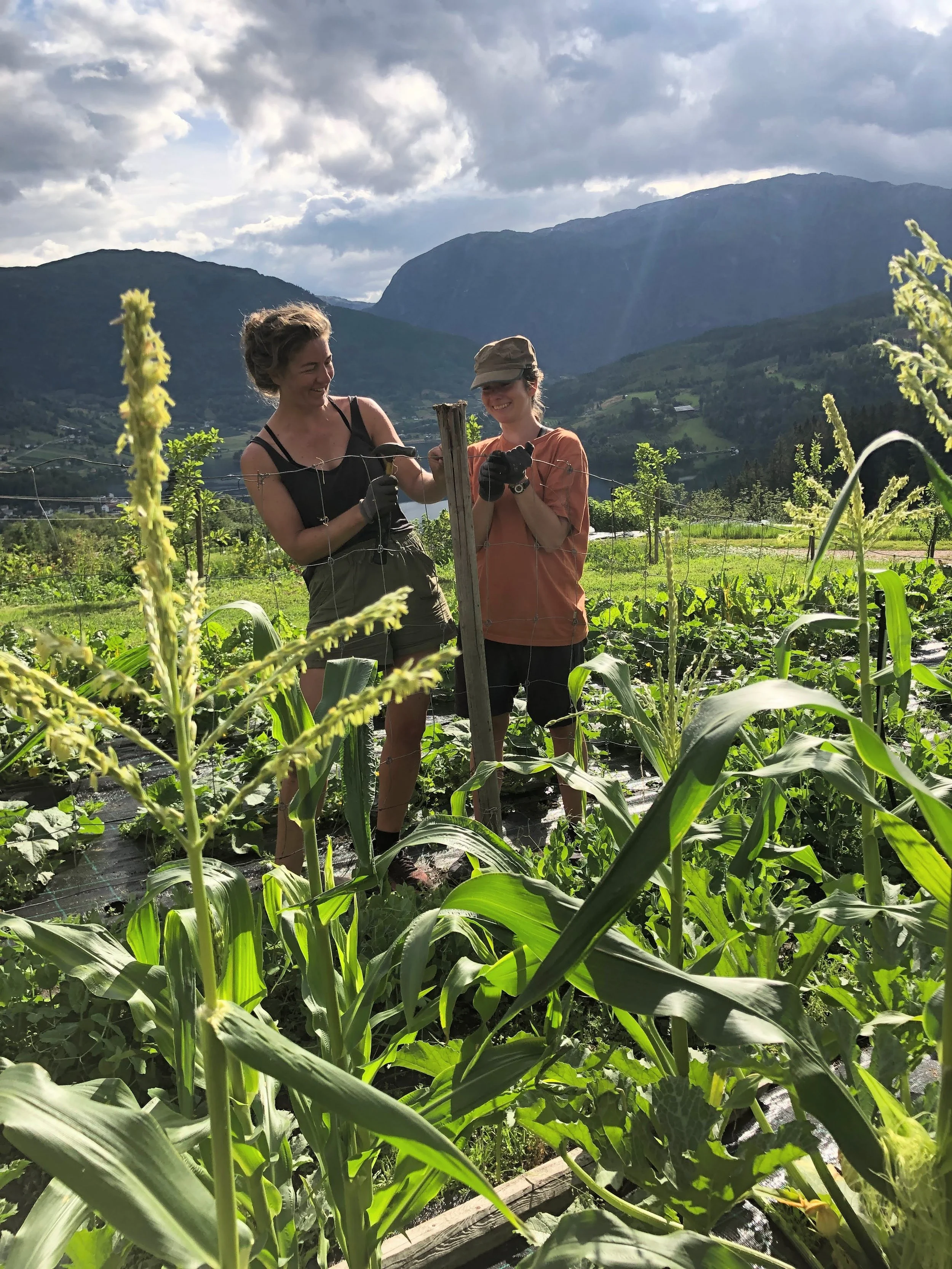 I den travleste tida bor og arbeider det også én eller to unge frivillige gårdshjelpere med oss. Ofte er det studenter fra gartner- og landbruksutdannelser, som ønsker å lære seg mer om markedshager og småskala blomster- og grønnsaksproduksjon. Andre er her gjennom organisasjonen ‘World Wide Opportunities on Organic Farms’ https://www.wwoofnorway.org. Alle er de uvurderlige bidragsytere i gårdsfellesskapet og en del av familien mens de bor her! Vi startet selv drømmen om en vestlandsåker gjennom egne erfaringer som frivillige på gårder i inn- og utland, og håper vi kan bidra til å inspirere en ny generasjon til å interessere seg i bærekraftig landbruk.